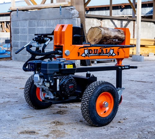 自宅に薪割りスペースがない...できるだけコストを抑えたい...手作業での薪割りはちょっと...という方のために、玉切りされた木をご自分で簡単操作で割れる、エンジン式の薪割り機を完備しています。
