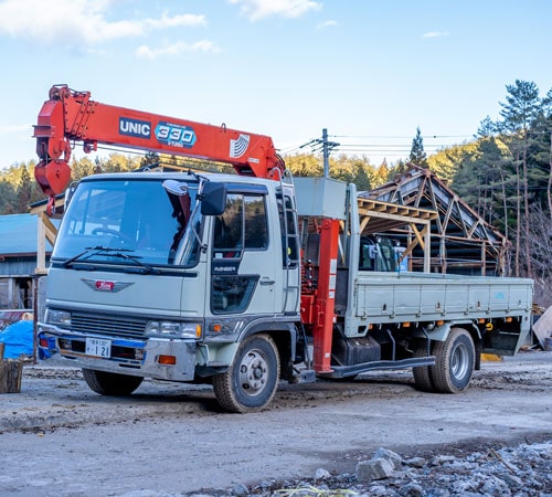 ジオトレイルではユニック付きで運搬力充分な大容量のトラックをご用意しています。